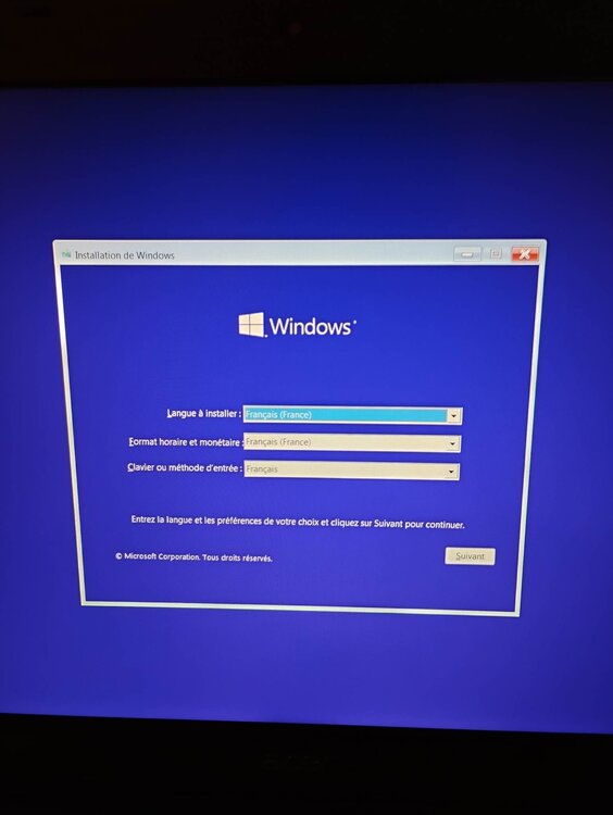 il reboote sur la clé (que j'ai pas retirée ...) et je me retrouve sur l'écran de choix de la langue, format horaire ... J'aurais dû retirer la clé ... Je reboote ? sans la clé ? à la sauvage ? parce que là je ne peux faire que "suivant"