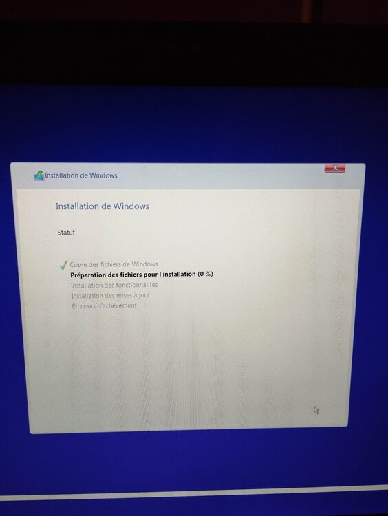 il a rebooté .. j'en suis à la création du compte ... a priori c'est parti pour l'installation classique de windows ... merci !