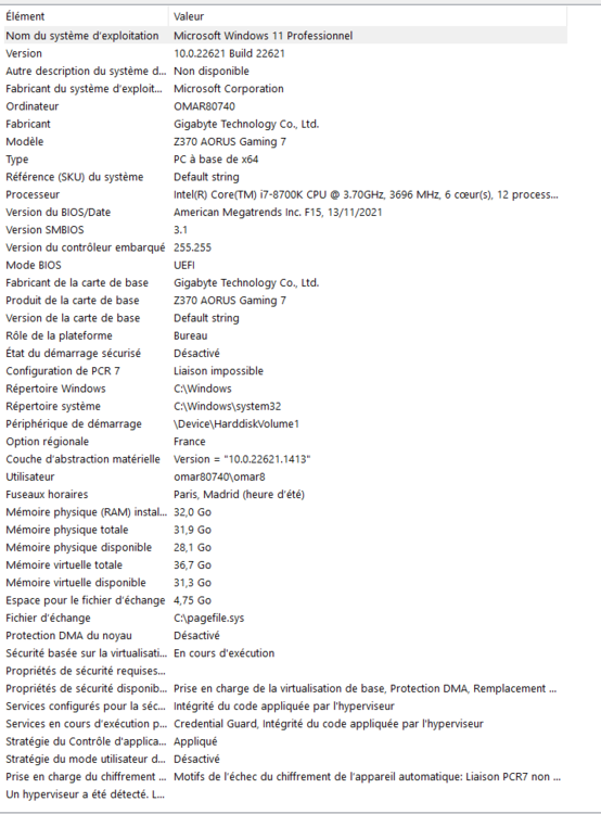 System Information (local) Computer name: OMAR80740 Windows version: Windows 11, 10.0, version 2009, build: 22621 (x64) Windows dir: C:\Windows Hardware: Z370 AORUS Gaming 7, Gigabyte Technology Co., Ltd. CPU: GenuineIntel Intel(R) Core(TM) i7-8700K CPU @ 3.70GHz 8664, level: 6 Processor count: 12 logical processors, active mask: 4095 RAM: 32682,9MB Crash Dump Analysis Crash dumps are enabled on your computer. Crash dump directories: C:\Windows C:\Windows\Minidump No valid crash dumps have been found on your computer. Conclusion Crash dumps are enabled but no valid crash dumps have been found. In case you are experiencing system crashes, it may be that crash dumps are prevented from being written out. Check out the following article for possible causes: If crash dumps are not written out. Read the suggestions displayed in the bugcheck analysis above. The analysis process took 0:00:02 (h:mm:ss).