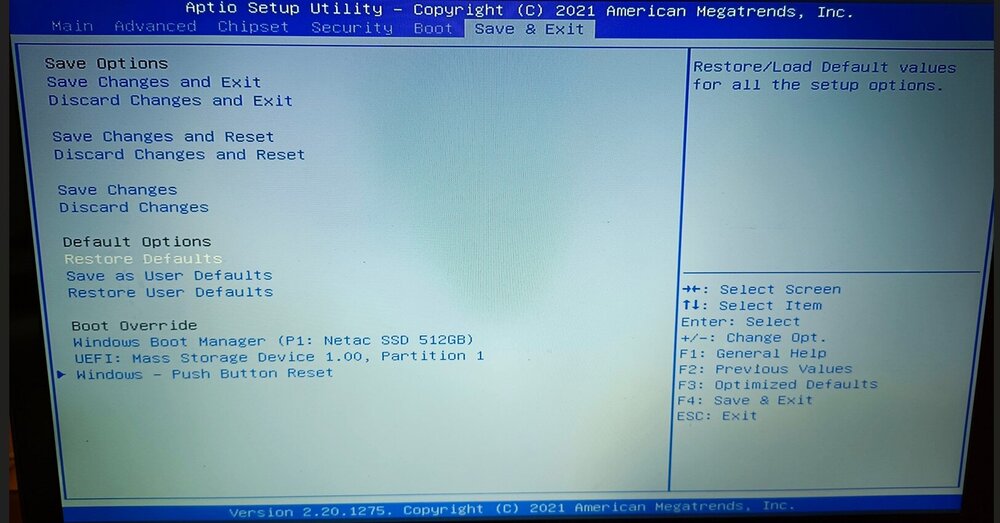 Bonjour Avant de faire 1 bêtise irréparable, je poste la capture écran du menu bios "Exit". Tu peux me confirmer les options vu que c'est pas exactement les termes que tu as employé stp?