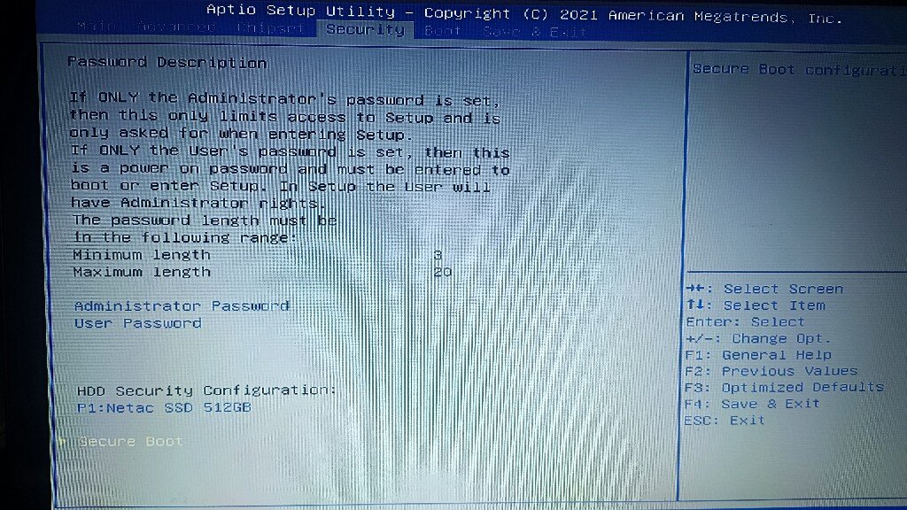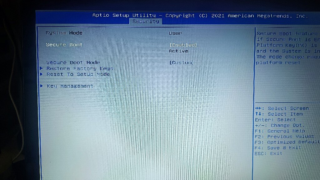 J'ai essayé de suivre cette procédure. Je poste les différentes options disponibles dans partie "security" du BIOS. Rien qui reprend les éléments mentionnés avant. Désolé pour la mauvaise qualité des images