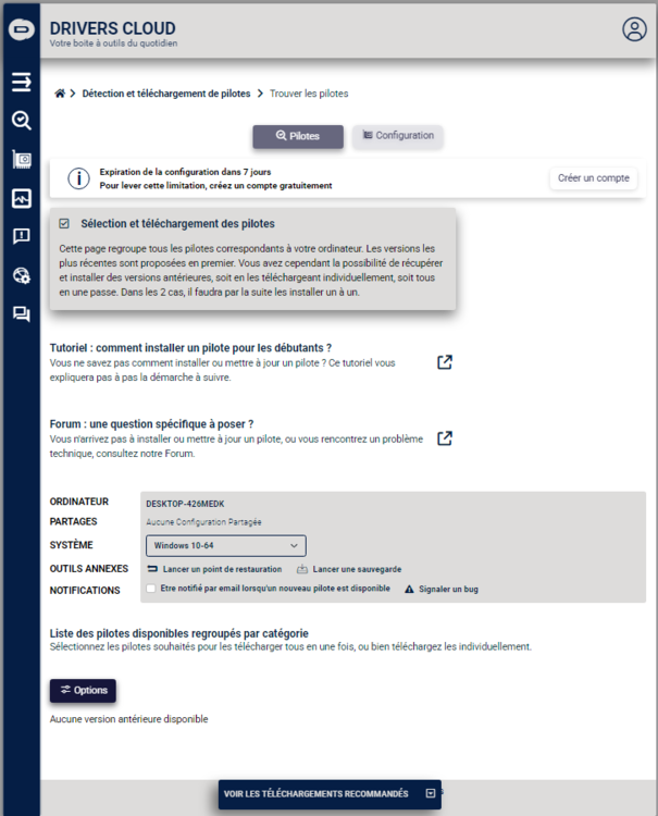 J'ai retéléchargé DRIVERS CLOUD, relancé le scan, le résultat est identique. Je ne vois pas ce qui cloche. -