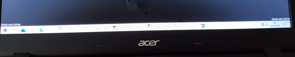 Bonjour, j'ai un ACER ASPIRE ES17 avec W10 22H2 . je voudrais passer en mode sans echec pour désinstaller un antivirus ESET : j'ai essayé de réparer F8 ( qui ne fonctionne pas ) sur ce W10 avec la manip : ""Activer ou désactiver le menu F8 sur les versions récentes de Windows 10 et 11 : Sur les versions récentes de Windows 10 (au moins depuis la version 1903 et jusqu'à la version 2004) ou sous Windows 11, faites un clic droit sur le bouton "Démarrer" et cliquez sur "Windows PowerShell (admin)"....Pour réactiver le menu F8, tapez cette commande : bcdedit /set bootmenupolicy legacy…. ce qui a donné L'opération a réussi. Lors du démarrage de votre ordinateur, appuyez sur la touche F8 pour afficher le menu "Options de démarrage avancées" ... ET là , F8 ne marche toujours pas !? DONC, j'essaie avec la manip "" W+I puis parametres puis etc ...... puis redemarrer puis ......... F5 : et là j'ai d'abord un écran en mode sans echec qui se remplit mais qui ne donne pas d'acces internet comme attendu ( car j'ai une wifi activée ) !? ET en plus avec une invite de modifier des parametres en passant par MODE AVION ... suite qui d'ailleurs m'est incompréhensible ... ET là JE SAIS PAS FAIRE ... SVP voir photos Par avance merci pour dépannage de ce MSE. JPC38 -