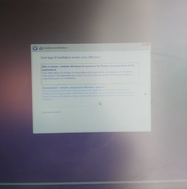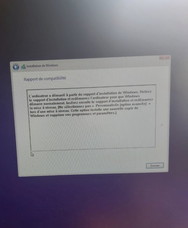 ok c'est bon sa a marché l'écran m'affiche une fenêtre pour l'installation de Windows