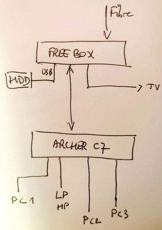 Ma configuration est assez simple : une FreeBox Revolution, un routeur ARCHER C7 , une imprimante et quelques PC ...