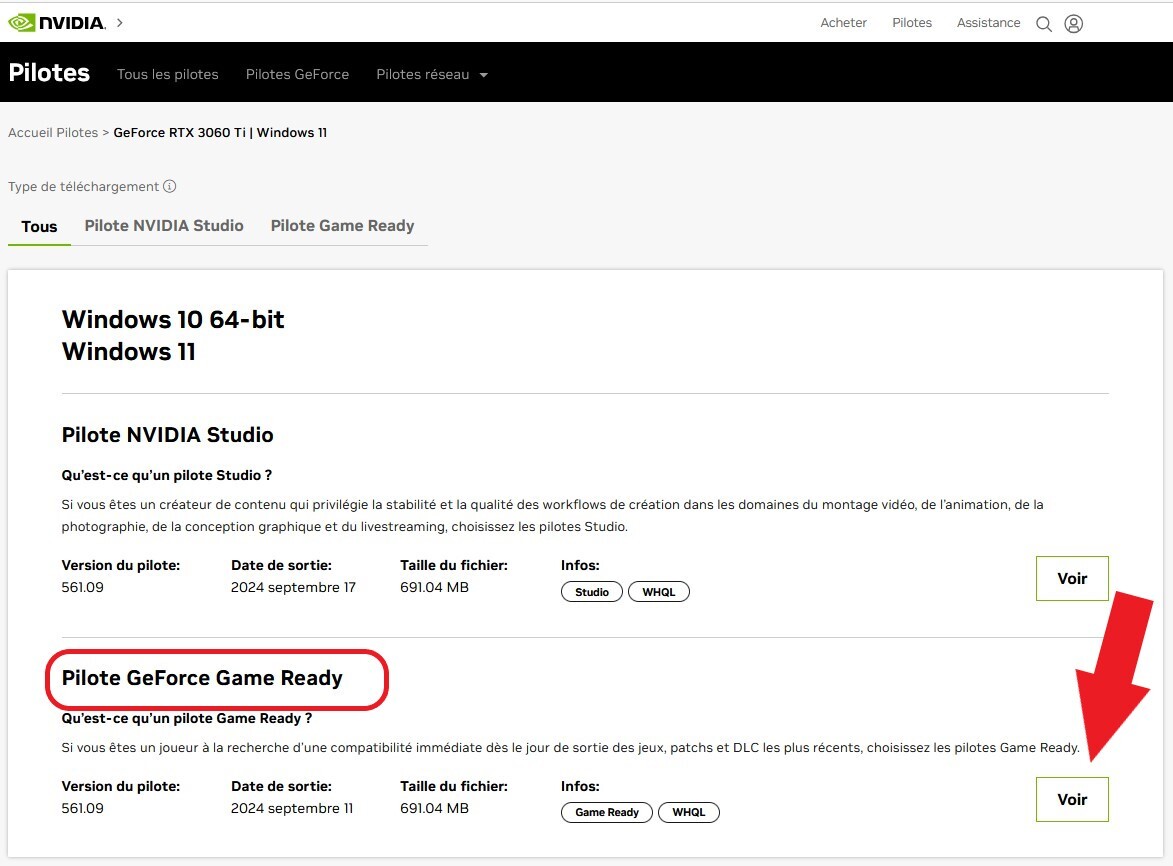 Je te conseille donc de désinstaller ton pilote actuel, ainsi que toutes les applications nVIDIA actuellement présentes dans Paramètres > Applications et de télécharger/installer le pilote 561.09 en version Game Ready :