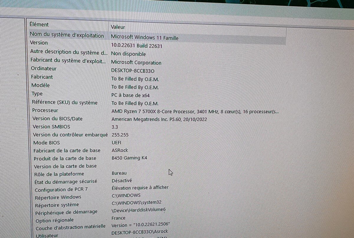 Bonjour tomtom95 😊, voici la capture pour le Secure Boot. Quant au Bios je l'avais mis à jour il y a quelques semaines mais j'avais pris la version 5.60 volontairement car c'est la dernière qui n'est pas en béta, j'ai toujours un petit apriori sur celles-ci. Veux tu que je passe à la 10.43 ?