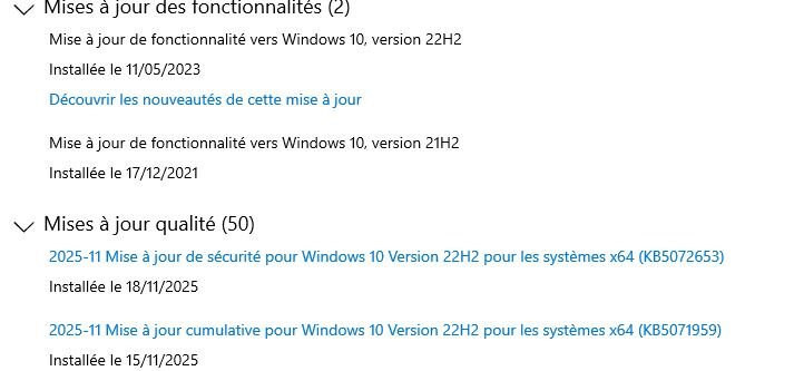 J'ai pourtant bien effectués les mise à jour de fonctionnalités version 22H2 et la mise à jour exceptionnelle pour corriger le bug pour ESU KB5071959 !
